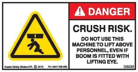 CRUSH RISK-DO NOT USE TO LIFT ABOVE PERSONNEL -LIFTING EYE (Horizontal)