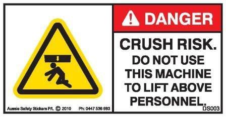 DO NOT LIFT ABOVE PERSONNEL (Horizontal)