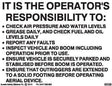 INSTRUCTS OPERATOR ON HIS RESPONSIBILITIES, USED ON CONCRETE BOOM PUMP