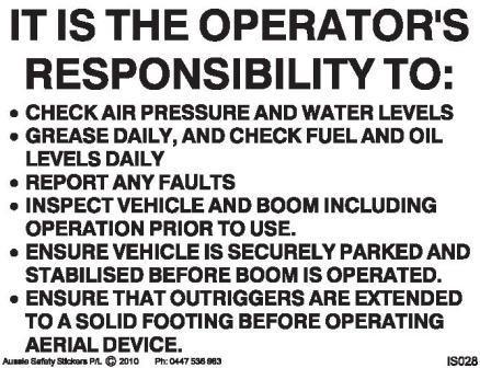 OPERATORS RESPONSIBILITIES-CONCRETE BOOM PUMP