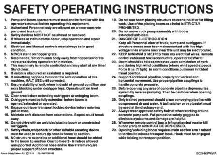 SAFETY OPERATING INSTRUCTIONS FOR CONCRETE BOOM PUMP FOR NSW AND WA