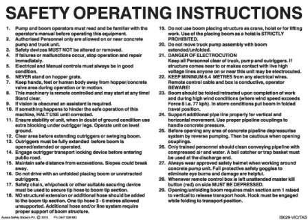 SAFETY OPERATING INSTRUCTIONS FOR CONCRETE BOOM PUMP FOR VIC AND TAS