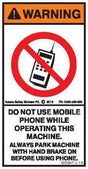 USED TO INFORM OPERATOR TO TURN OFF EQUIPMENT AND APPLY HAND BRAKE BEFORE USING MOBILE PHONE
