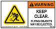 INDICATES FLYING DEBRIS USED ON SLASHERS & MOWERS.