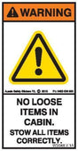 USED TO INSTRUCT OPERATOR TO STOW LOOSE ITEMS IN CABIN.