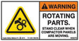 WARNS OF COMPACTOR PANEL CRUSH ZONE.