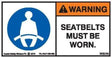 PLACED IN CABIN TO INFORM OPERATOR OF CURRENT LEGISLATION REGARDING SEAT BELT