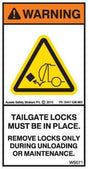 INFORMS THAT TAILGATE MUST BE LOCKED AT ALL TIME UNLESS UNLOADING .