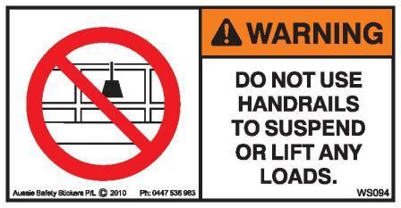 DO NOT SUSPEND FROM HANDRAILS (Horizontal)