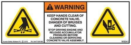 KEEP HANDS CLEAR OF CONCRETE PUMP VALVES (Horizontal)