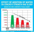 CONCRETE SLUMP CHART USED TO DETERMINE SLUMP AND STRENGTH OF CONCRETE MIX WITH THE ADDITION OF WATER TO THE MIX.