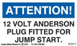 PLACE THESE DECALS AT THE CHARGING POINT OF A VEHICLE FITTED WITH A 12 VOLT SYSTEM