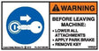 USED TO INFORM OPERATOR OF PROCEDURES PRIOR TO LEAVING MACHINE