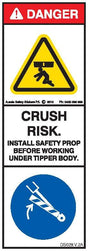 INSTALL PROP BEFORE WORKING UNDER TIPPER BODY (Vertical)