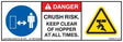 PLACED ADJACENT TO HOPPER MOUTH/ENTRANCE TO WARN OF CRUSH HAZARD.