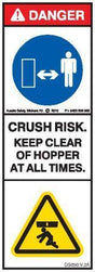 PLACED ADJACENT TO HOPPER MOUTH/ENTRANCE TO WARN OF CRUSH HAZARD.